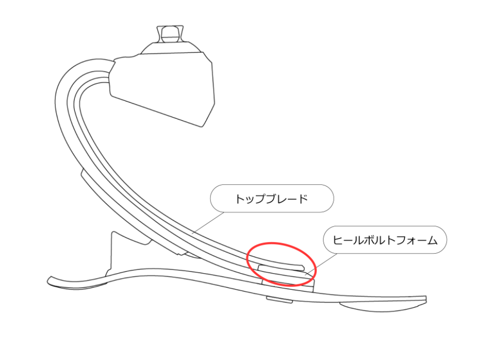 - ヒールウェッジをヒールブレードとフットブレードの間に無理やり押し込んで設置された場合、ヒールブレードをとめているボルトに負荷がかかり破損することがあります。