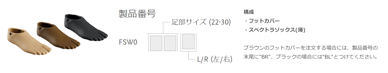 *y=足部サイズ(22-30)z=L/R(左/右)※足部サイズ26、右の場合はFSW026Rとなります。
