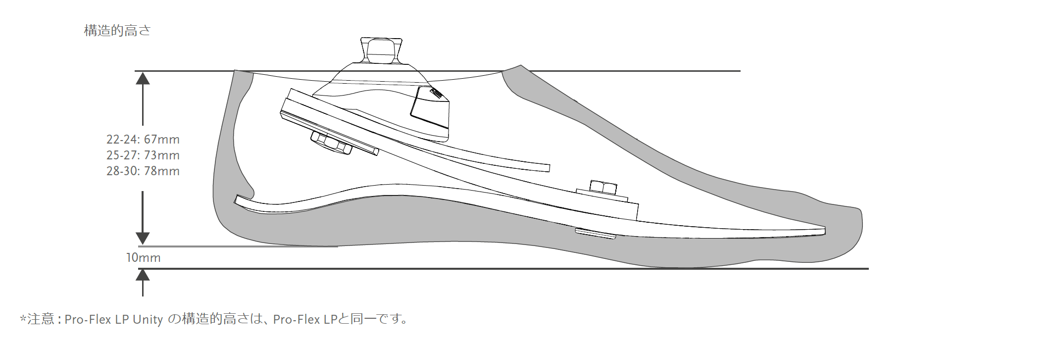 | 構造的高さ(27cm) | 73mm (オスピラミッドとフットカバーを含む) |