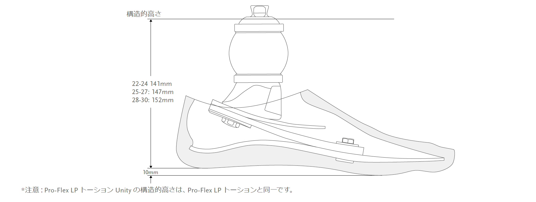 | 構造的高さ(27cm) | 147mm (オスピラミッドとフットカバーを含む) |