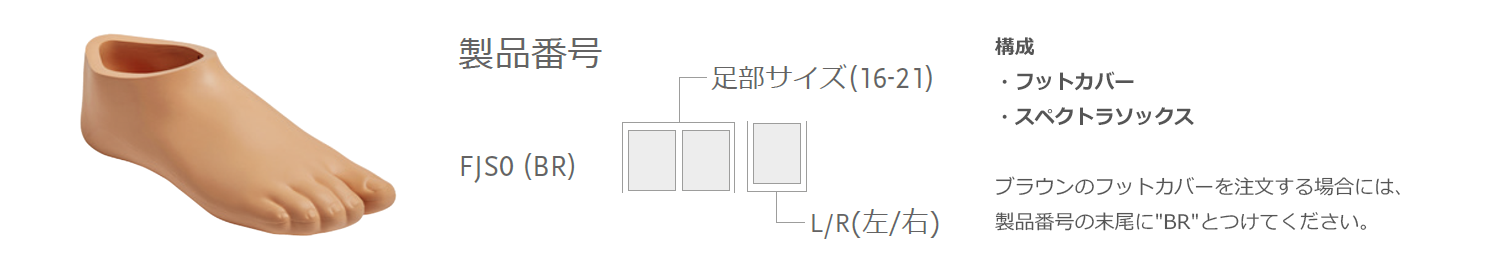 *y=足部サイズ(16-21)z=L/R(左/右)※足部サイズ18、右の場合はFJS018Rとなります。