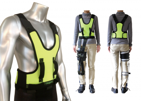 T-サポートは脳卒中片麻痺者の装具療法に使用することで、従来よりも高い治療効果が期待できる歩行補助具です。ベストが体幹機能を、ベストに取り付ける弾性バンドが遊脚期のスイングを補助します。