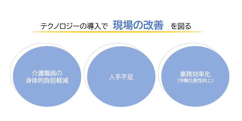 『介護テクノロジー導入支援事業』は介護人材の人手不足解消を目的として、厚生労働省が「介護ロボット」や「ICT」などのテクノロジー導入を推し進めるための支援事業です。
