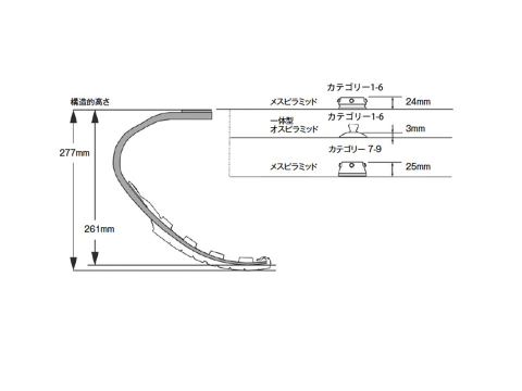 C型は垂直方向の衝撃を緩和し、初心者でも比較的使いやすいという利点があります。さらにオスピラミッドやメスピラミッドで日常用の義足に容易に連結でき、気軽に試すことができます。(図2,3)