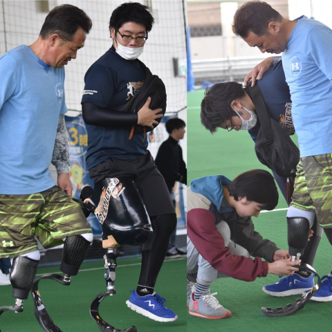 ⑤大腿義足の方は走るには大きなハードルがありますが、体の向きを斜めにして膝折れを防ぐ方法や、段差を利用して義足のみで着地する練習などで、徐々に慣らしていきます。