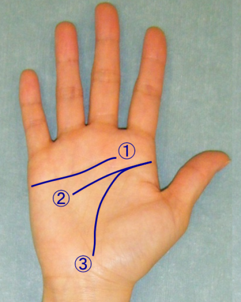 作製のポイント: MP関節の屈曲制限が生じないよう、スプリント遠位端が遠位および近位手掌皮線にかからないようにする。また、前腕支持部の長さを前腕長の2/3とする。スプリントによる手関節の固定・支持性を確保するために、母指球皮線を越えて母指球部を開けすぎないようにする(図5、6)。