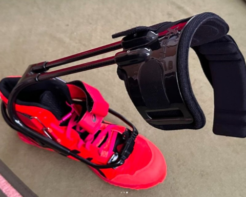 ターボメドは下垂足の方を対象にした、靴の外側に装着する革新的な歩行補助具です。